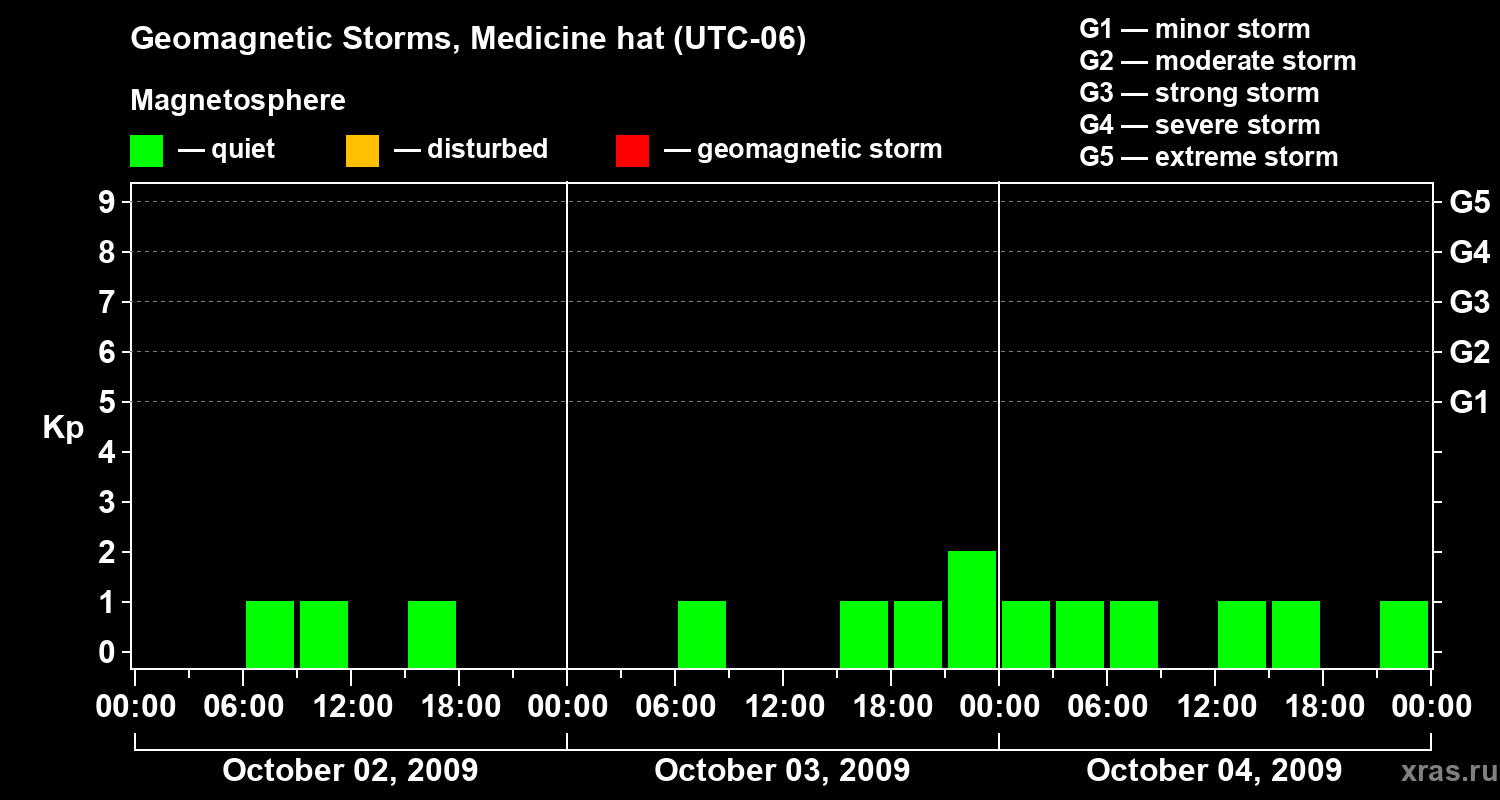 Geomagnetic storms in Medicine hat on Oct 04, 2009