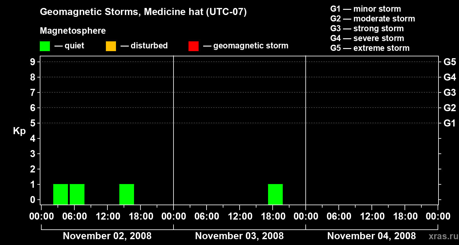 Geomagnetic storms in Medicine hat on Nov 04, 2008