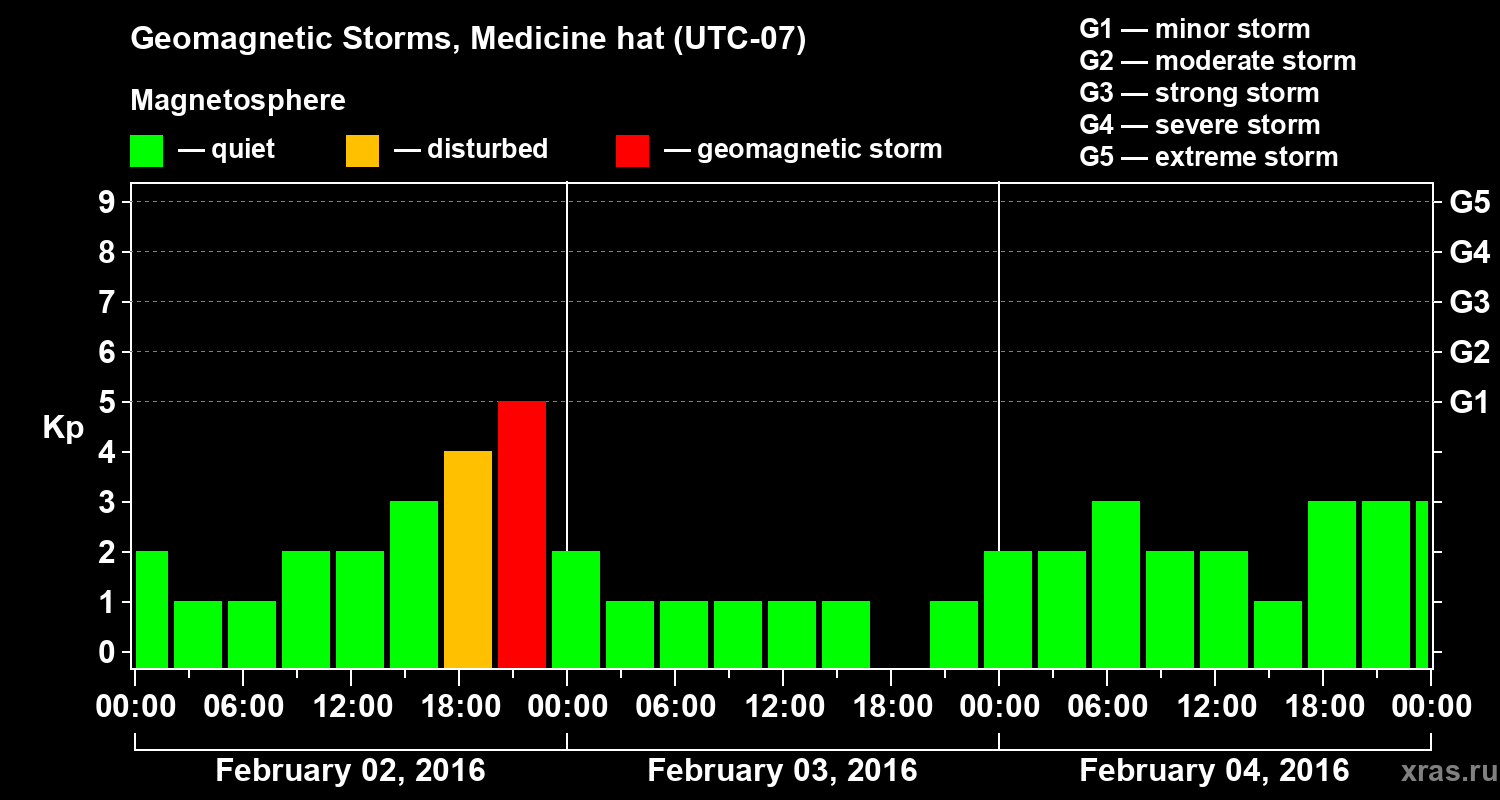 Geomagnetic storms in Medicine hat — Feb 04, 2016