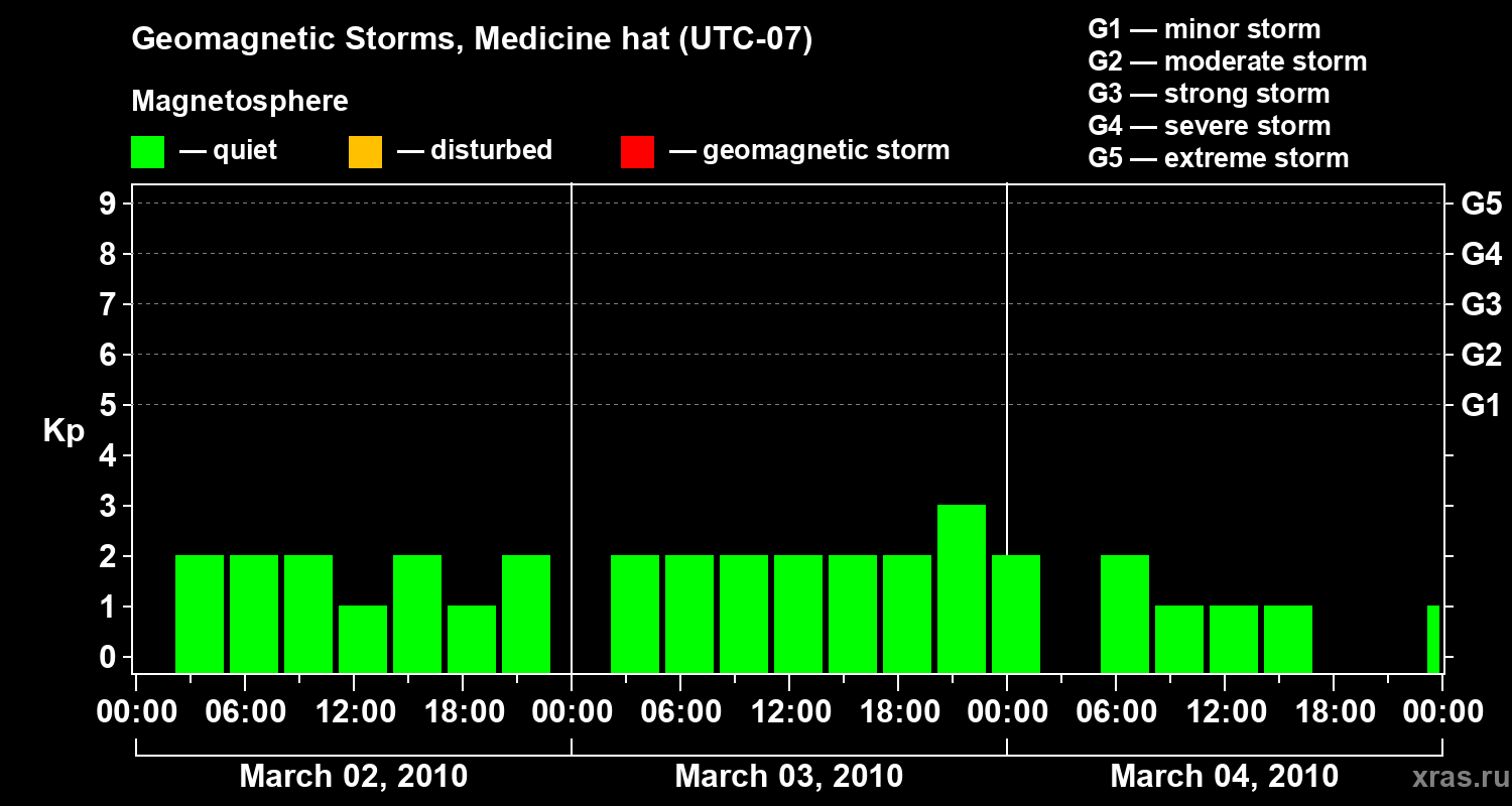 Geomagnetic storms in Medicine hat — Mar 04, 2010