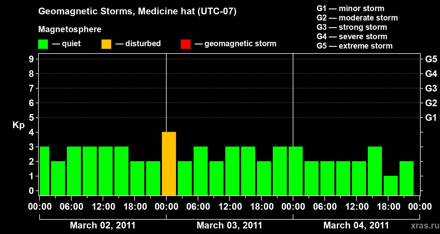 Geomagnetic storms in Medicine hat — Mar 04, 2011