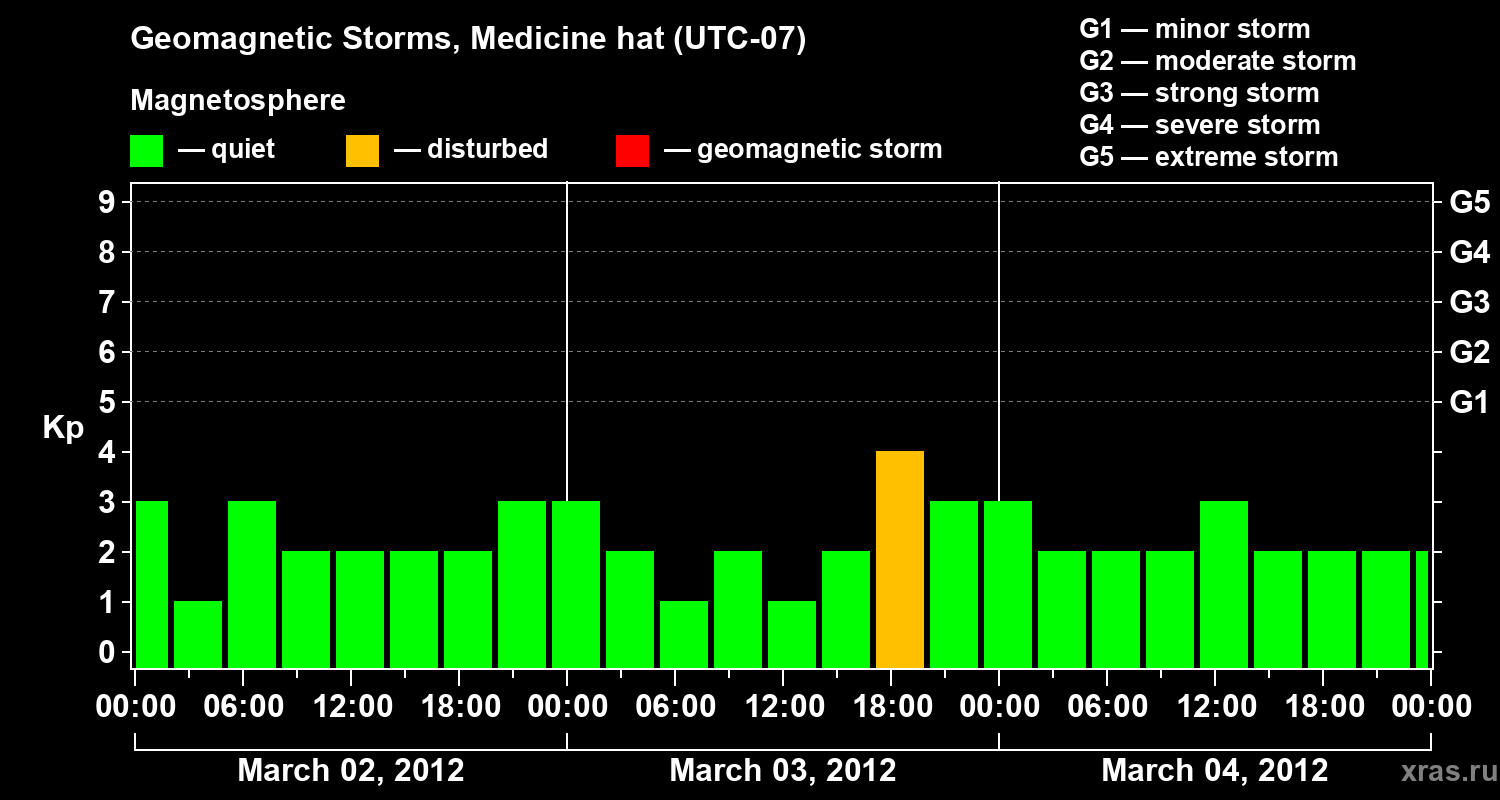 Geomagnetic storms in Medicine hat — Mar 04, 2012