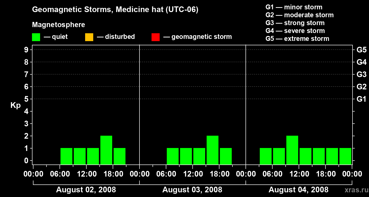 Geomagnetic storms in Medicine hat — Aug 04, 2008
