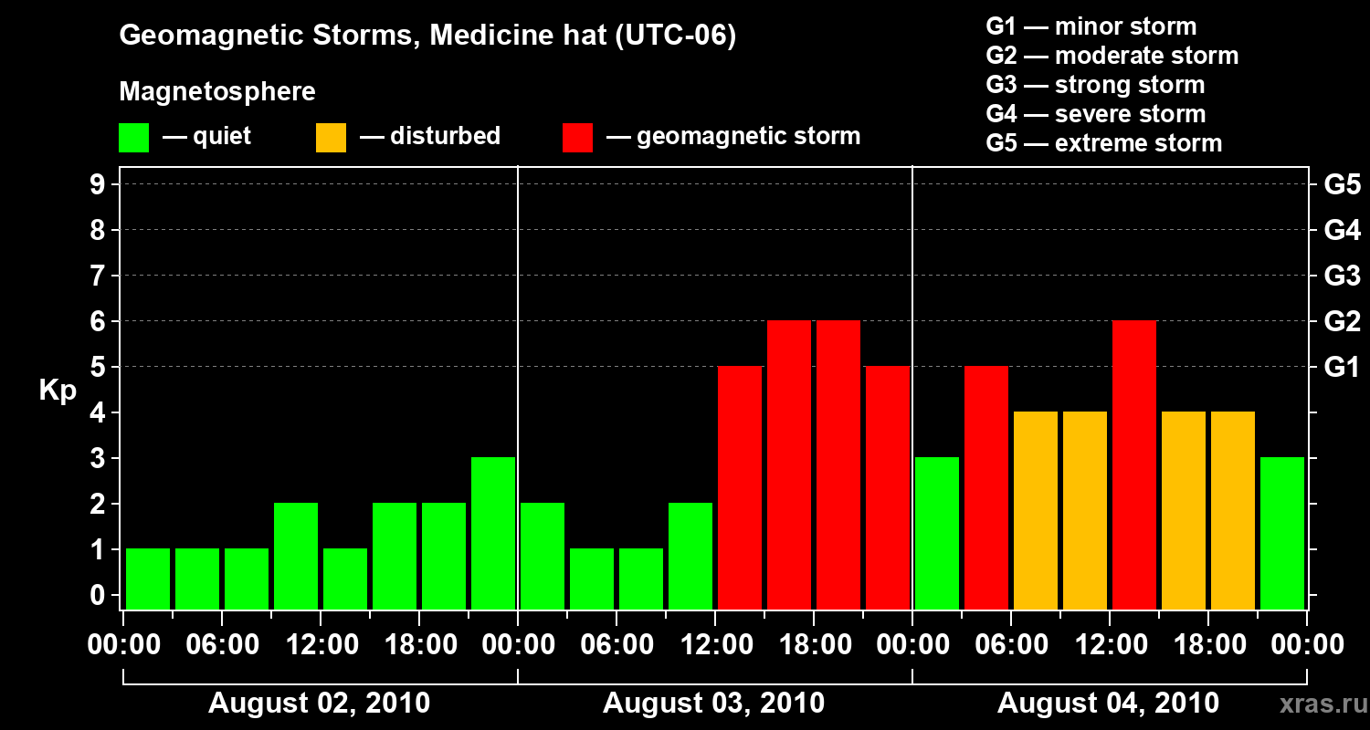 Geomagnetic storms in Medicine hat — Aug 04, 2010
