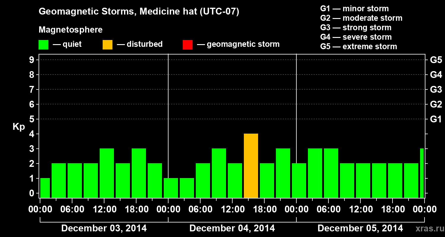 Geomagnetic storms in Medicine hat on Dec 05, 2014