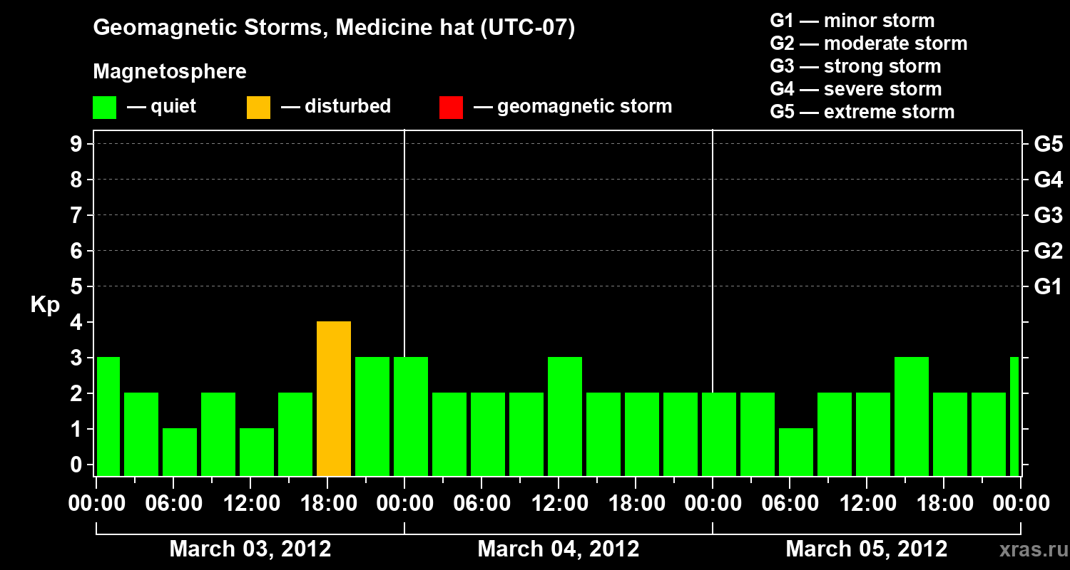 Geomagnetic storms in Medicine hat — Mar 05, 2012