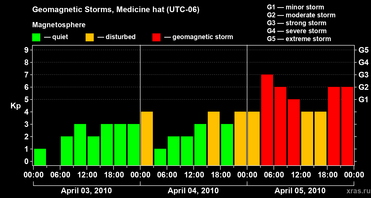 Geomagnetic storms in Medicine hat — Apr 05, 2010