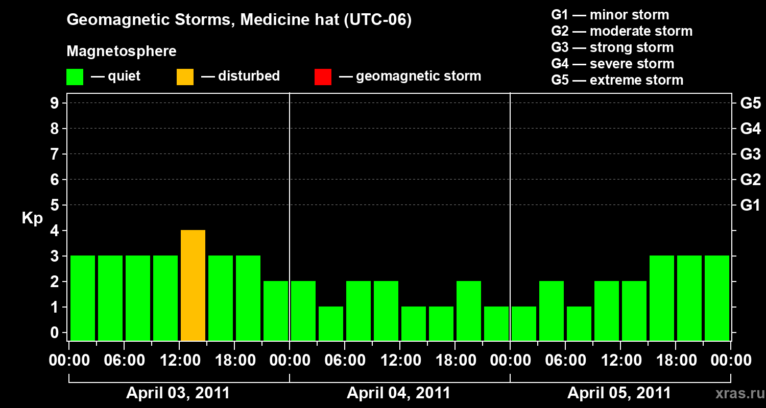 Geomagnetic storms in Medicine hat — Apr 05, 2011