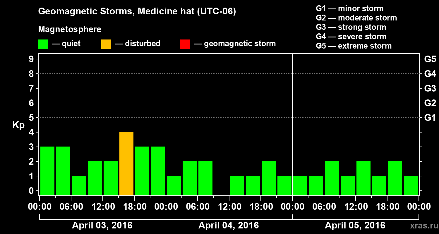 Geomagnetic storms in Medicine hat on Apr 05, 2016