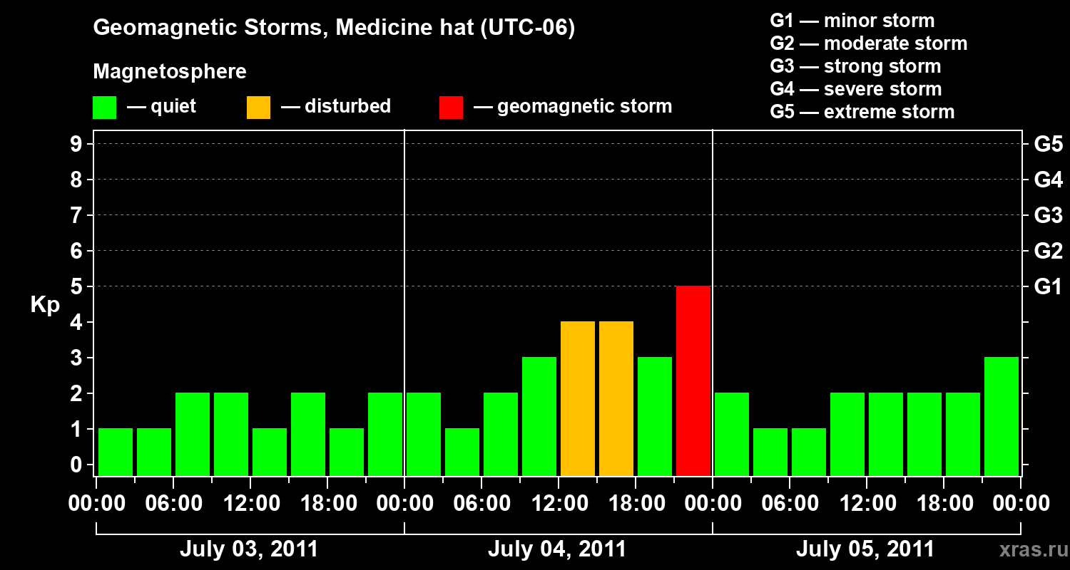 Geomagnetic storms in Medicine hat — Jul 05, 2011