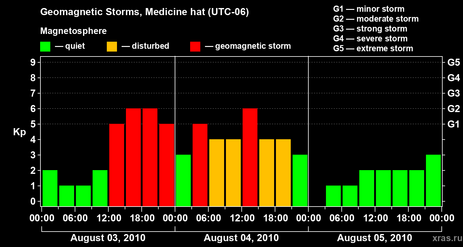 Geomagnetic storms in Medicine hat — Aug 05, 2010