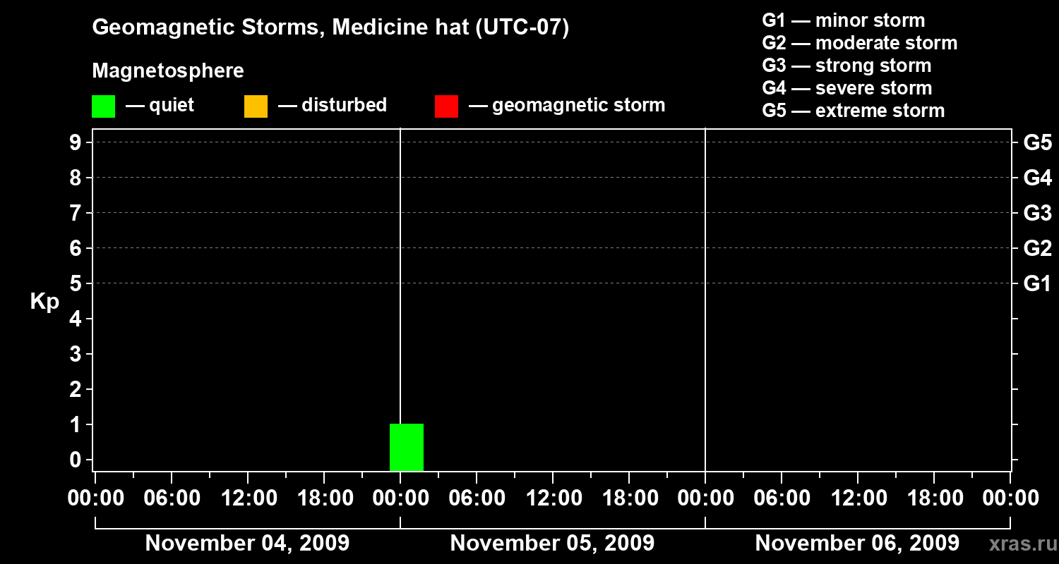Geomagnetic storms in Medicine hat on Nov 06, 2009