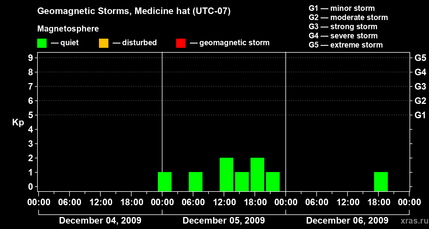 Geomagnetic storms in Medicine hat in December 2009
