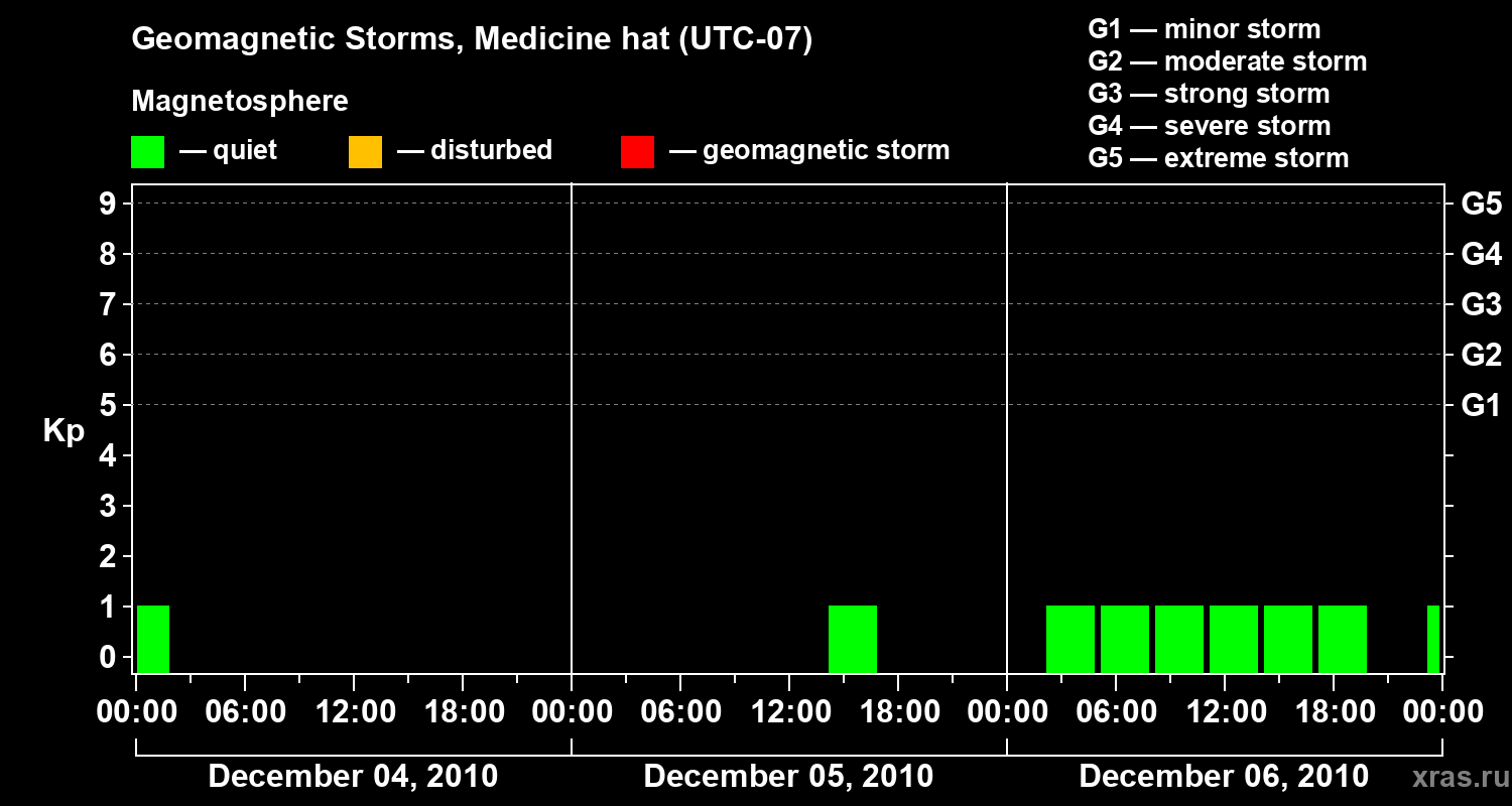 Geomagnetic storms in Medicine hat on Dec 06, 2010