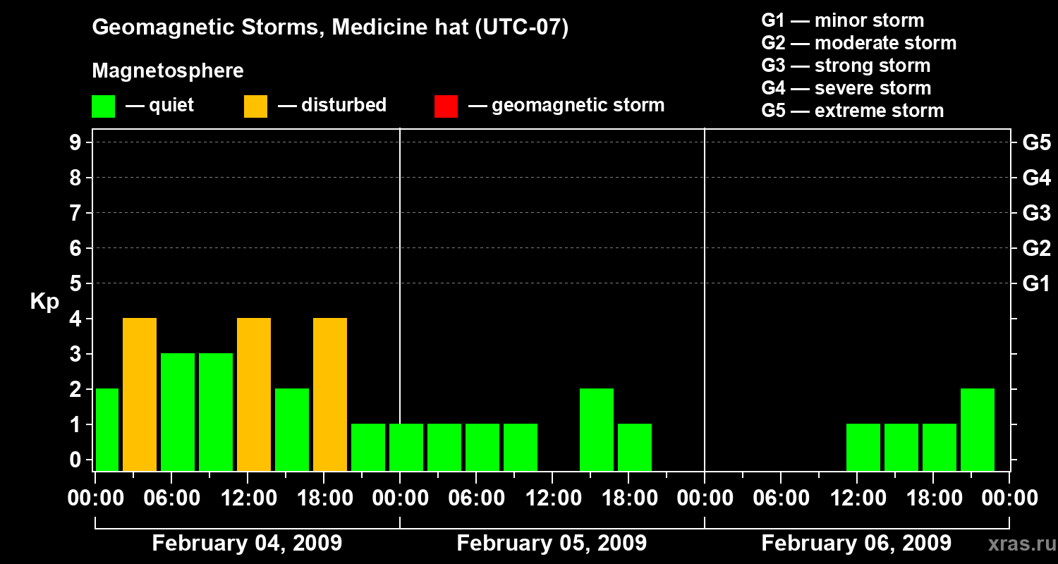 Geomagnetic storms in Medicine hat on Feb 06, 2009
