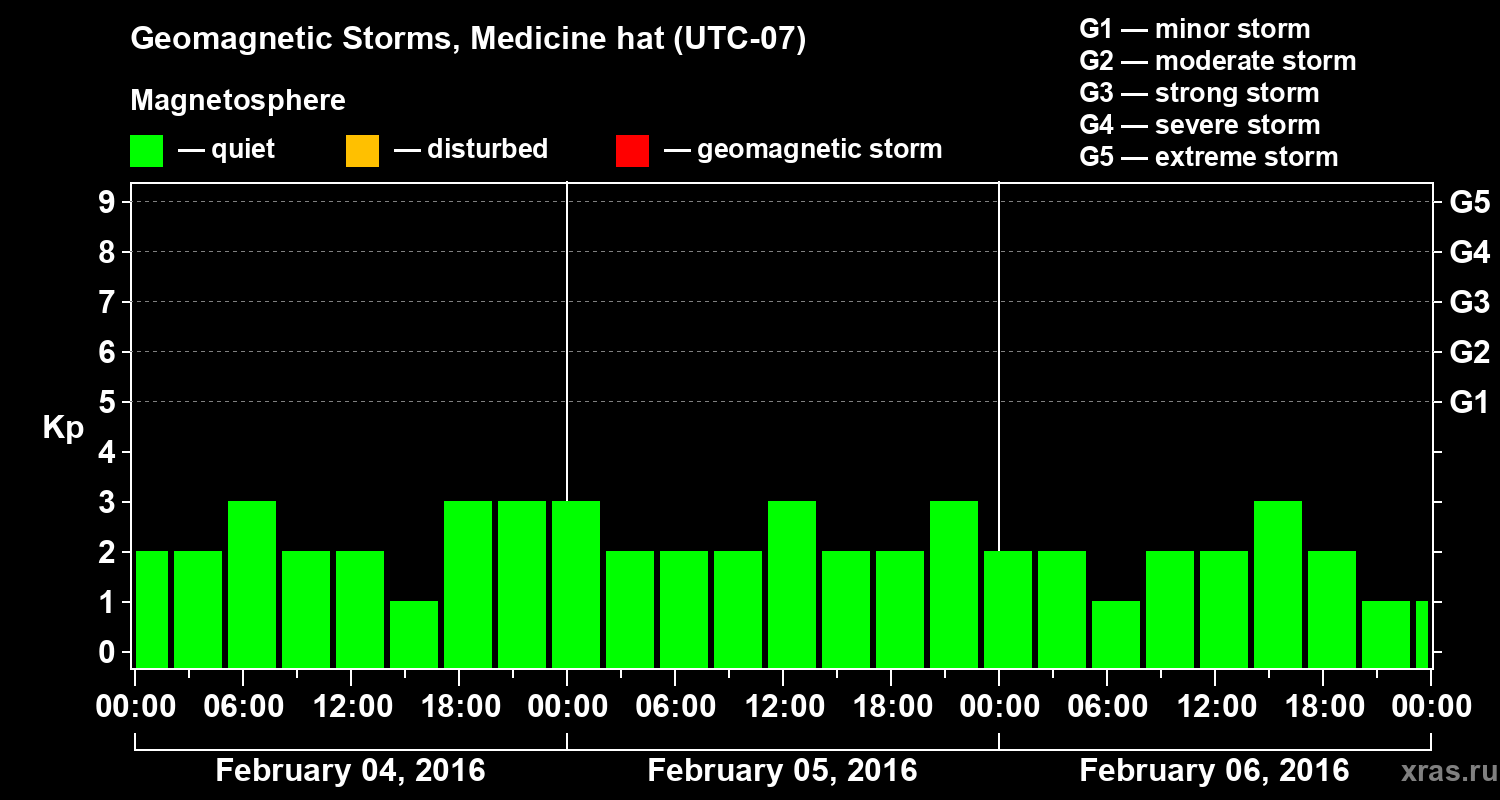 Geomagnetic storms in Medicine hat — Feb 06, 2016