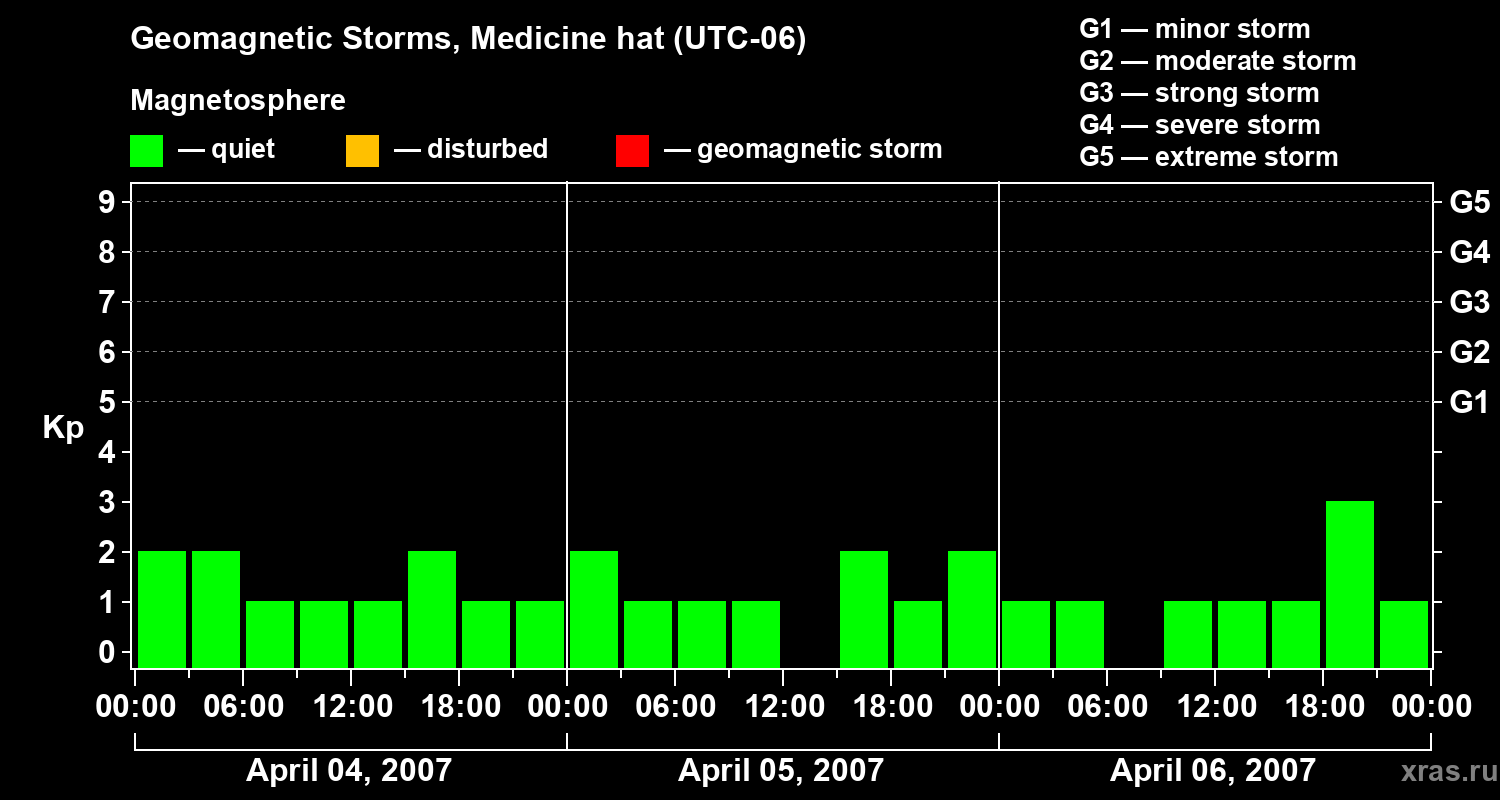 Geomagnetic storms in Medicine hat on Apr 06, 2007