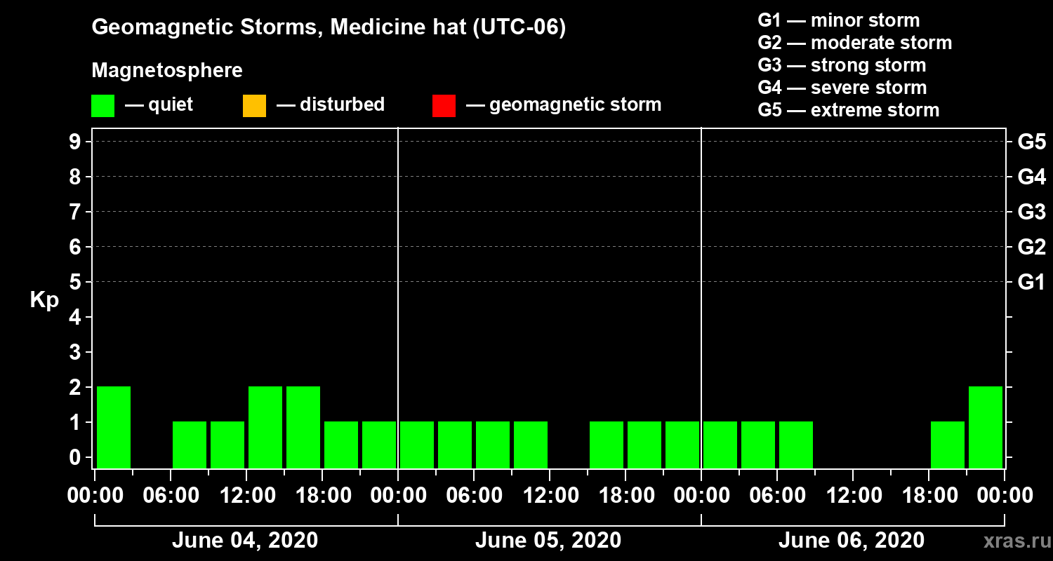 Geomagnetic storms in Medicine hat — Jun 06, 2020
