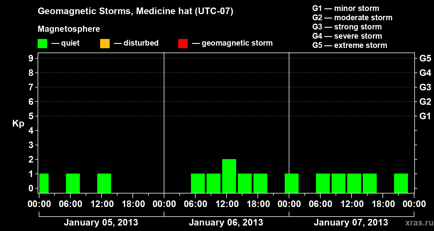 Geomagnetic storms in Medicine hat — Jan 07, 2013
