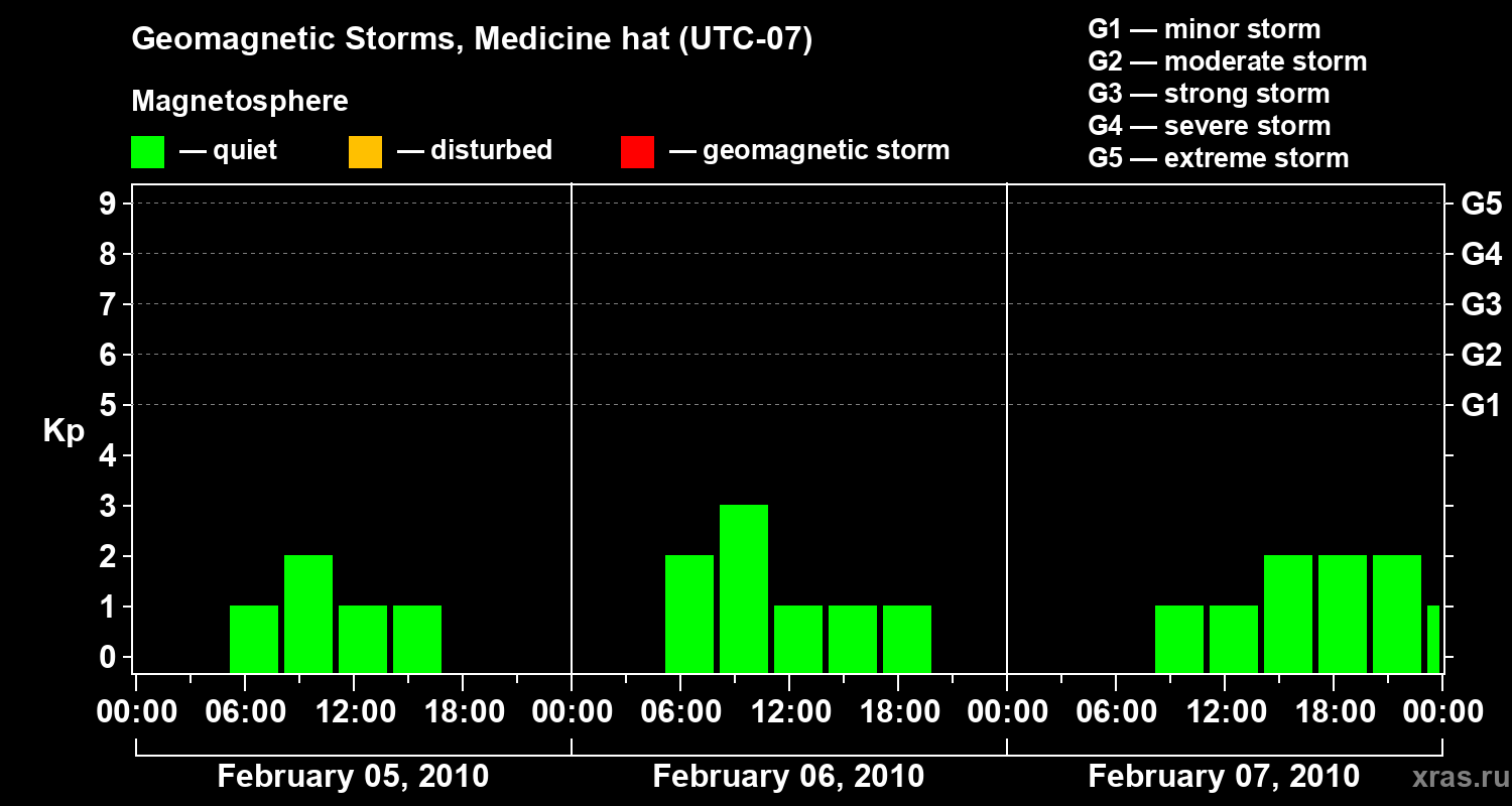 Geomagnetic storms in Medicine hat on Feb 07, 2010
