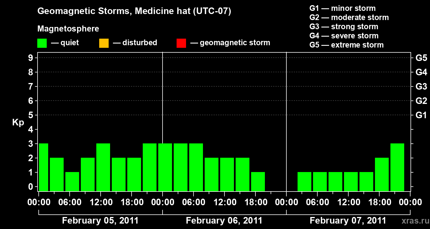 Geomagnetic storms in Medicine hat — Feb 07, 2011
