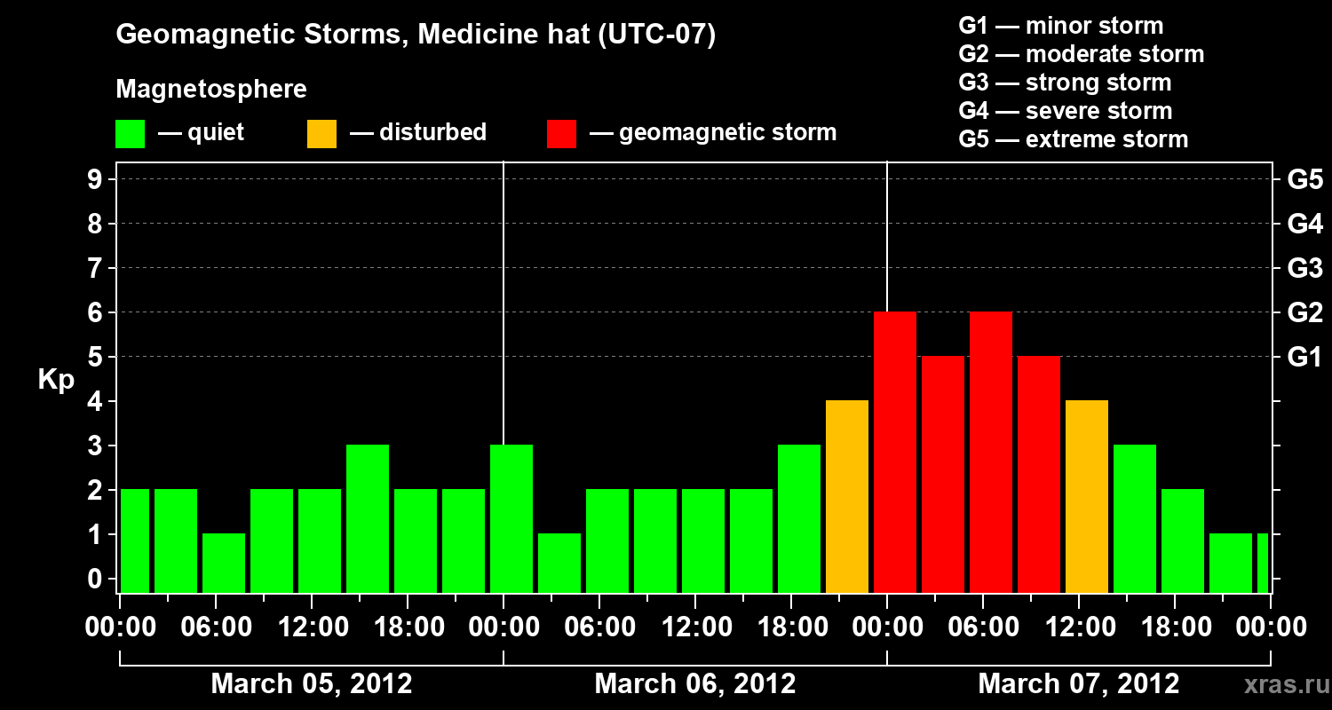 Geomagnetic storms in Medicine hat — Mar 07, 2012