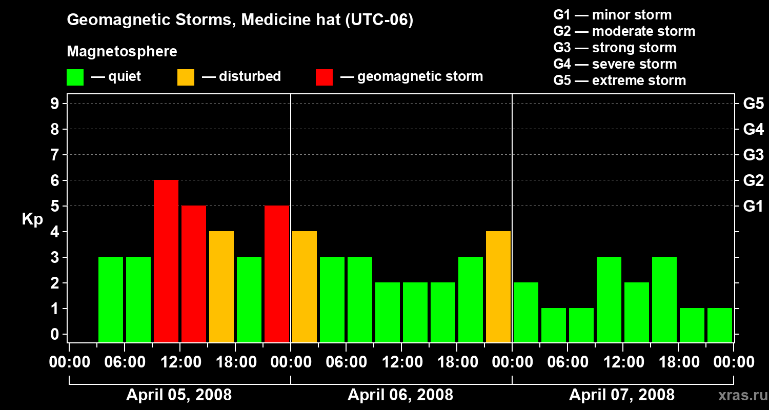 Geomagnetic storms in Medicine hat — Apr 07, 2008