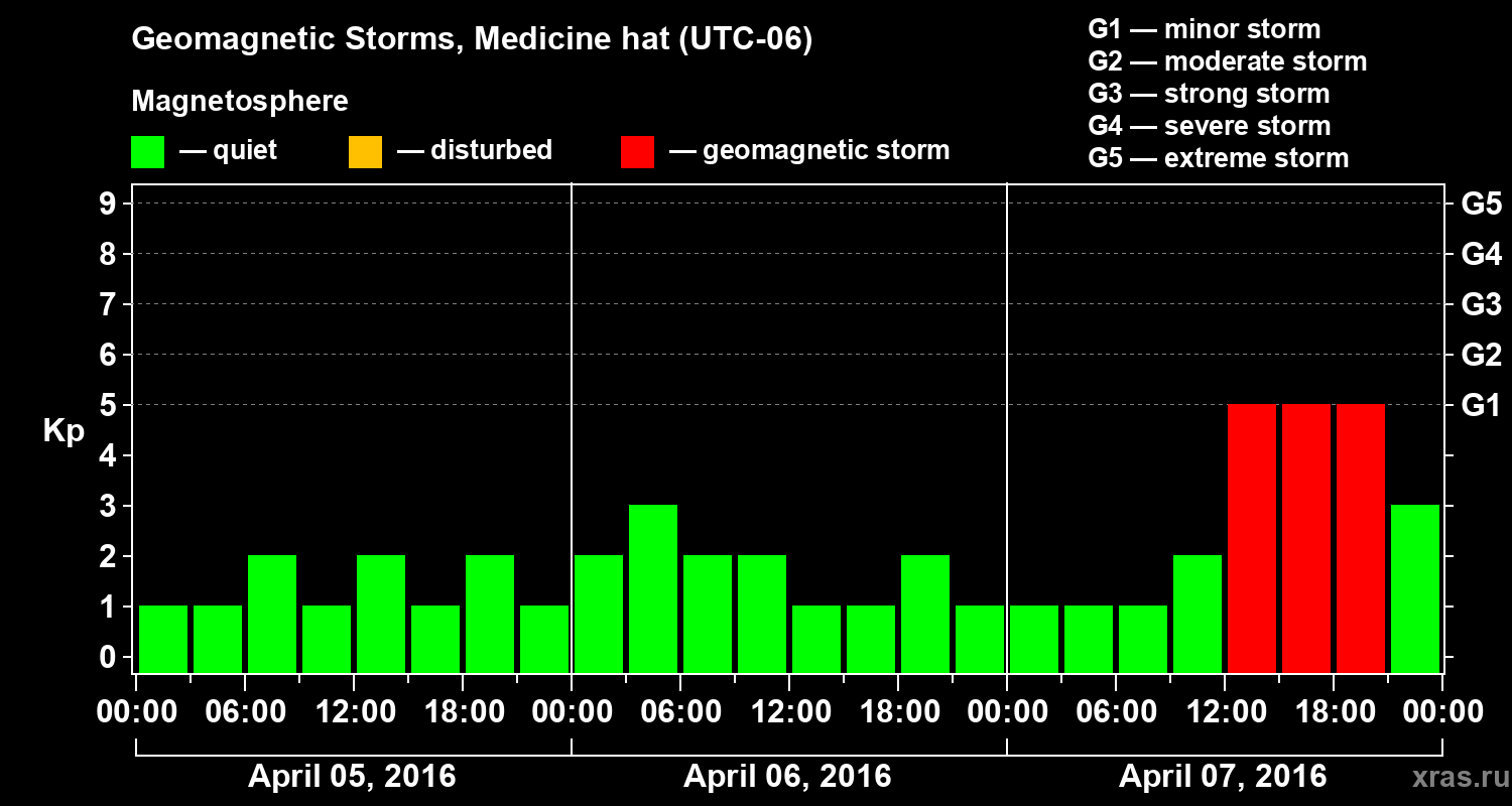 Geomagnetic storms in Medicine hat — Apr 07, 2016
