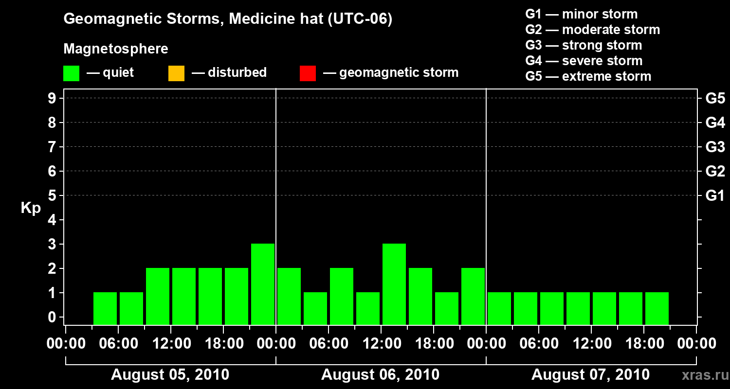 Geomagnetic storms in Medicine hat — Aug 07, 2010