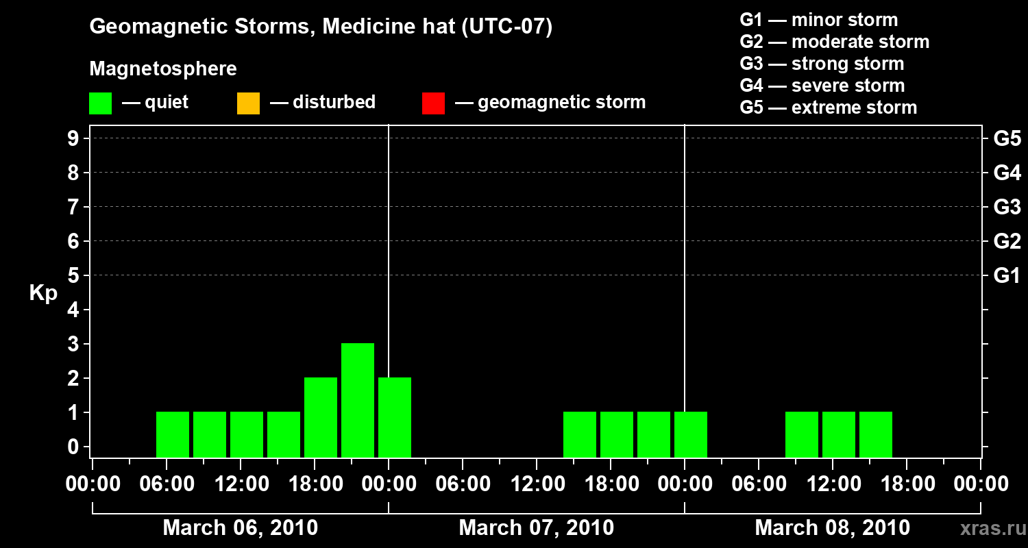Geomagnetic storms in Medicine hat — Mar 08, 2010