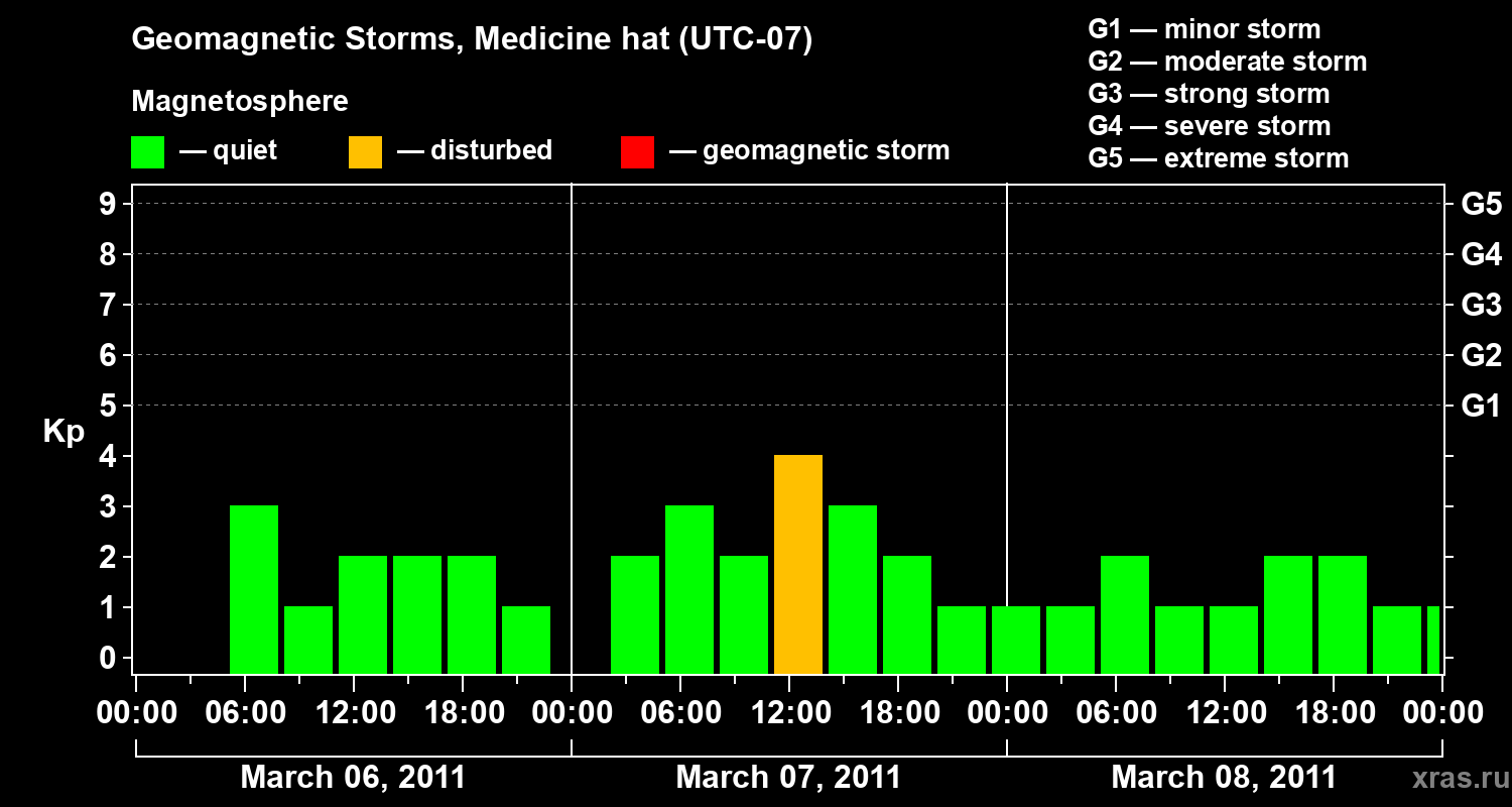 Geomagnetic storms in Medicine hat — Mar 08, 2011
