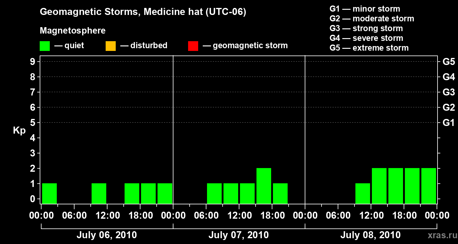 Geomagnetic storms in Medicine hat — Jul 08, 2010