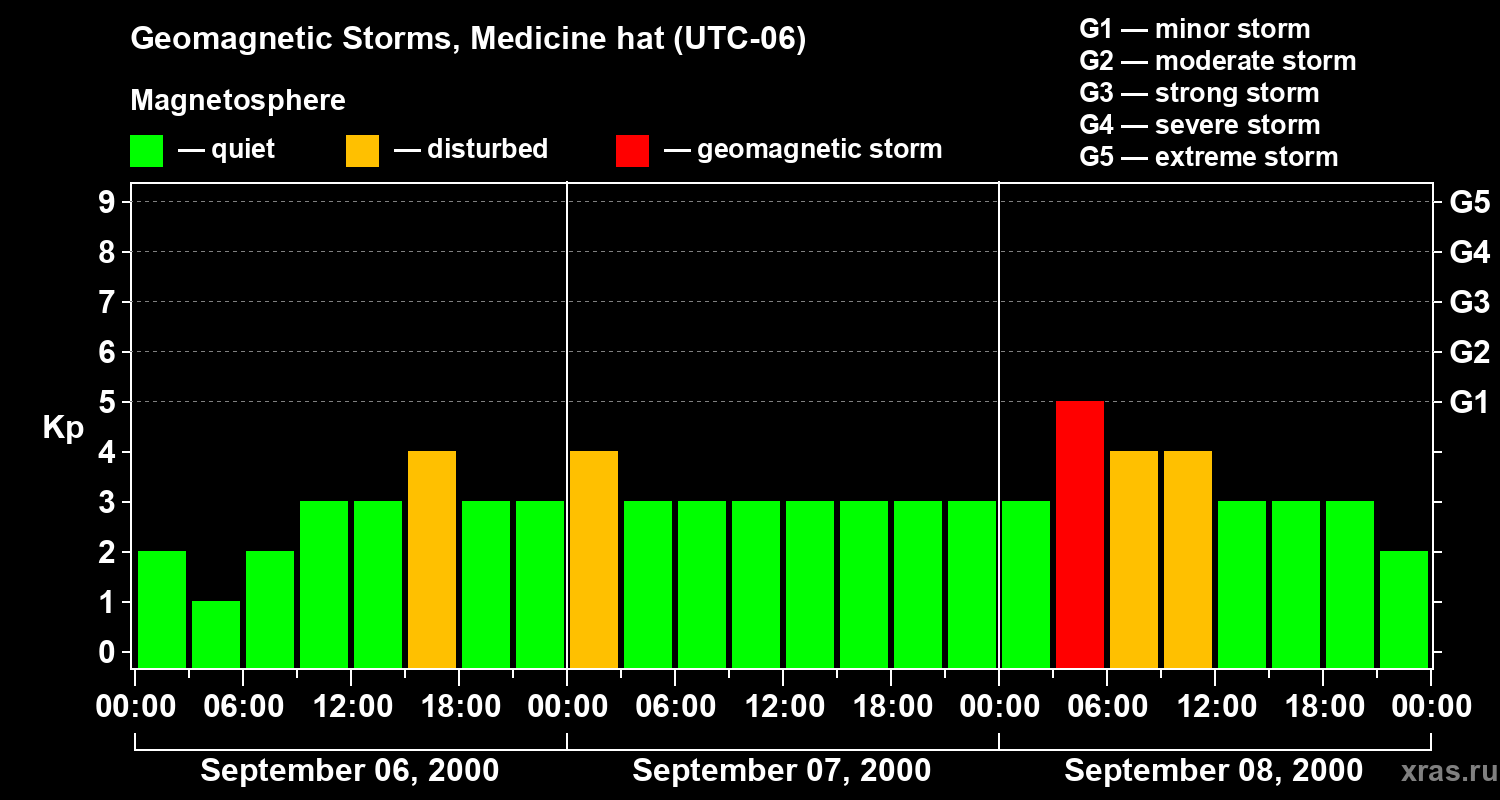 Geomagnetic storms in Medicine hat on Sep 08, 2000