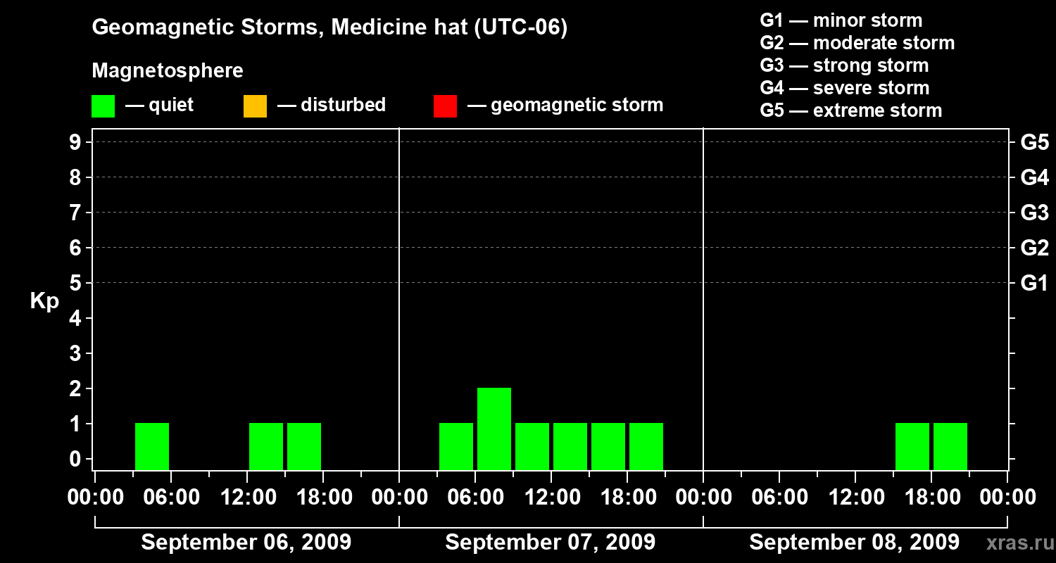 Geomagnetic storms in Medicine hat on Sep 08, 2009
