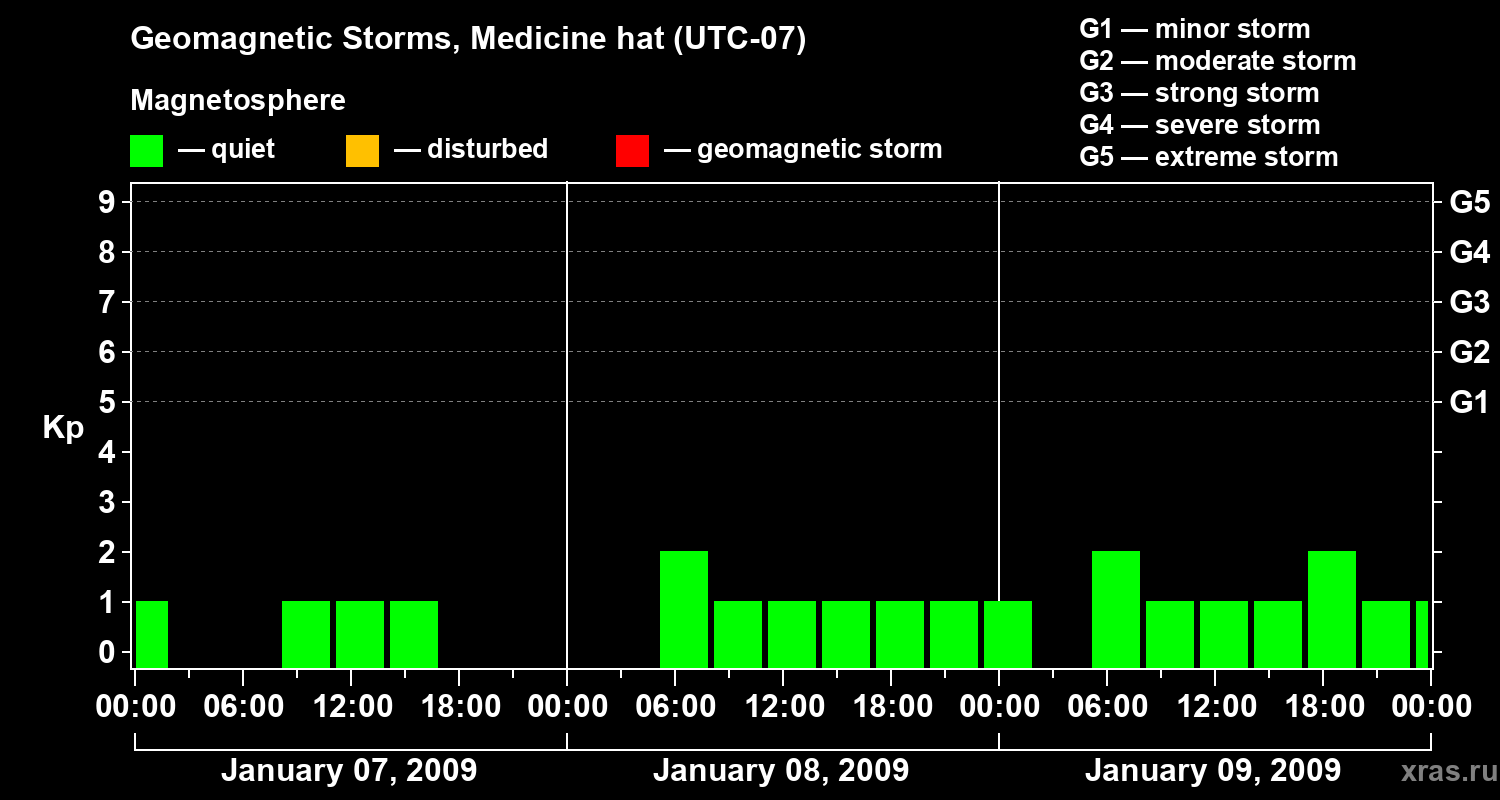 Geomagnetic storms in Medicine hat on Jan 09, 2009