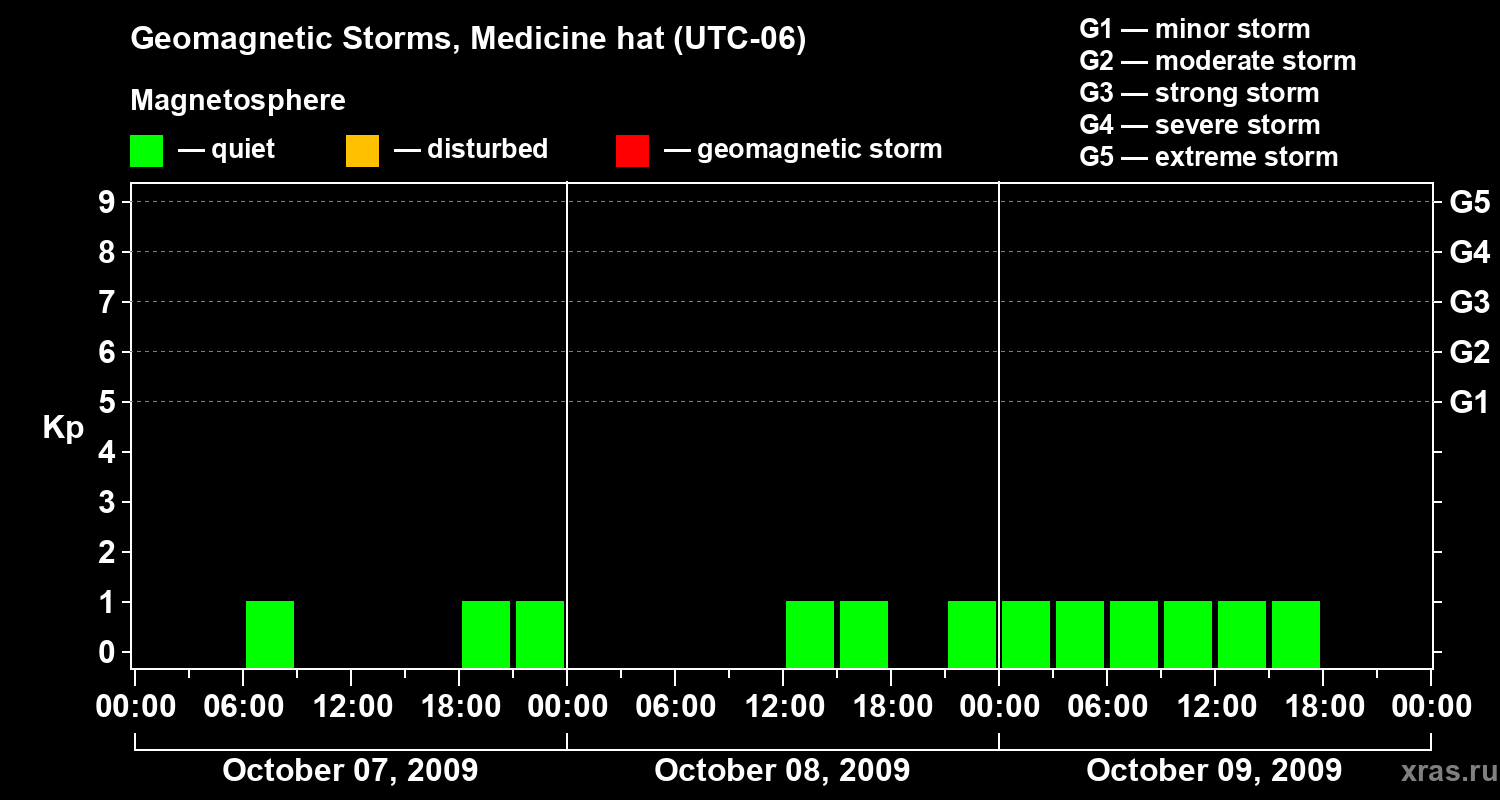 Geomagnetic storms in Medicine hat on Oct 09, 2009