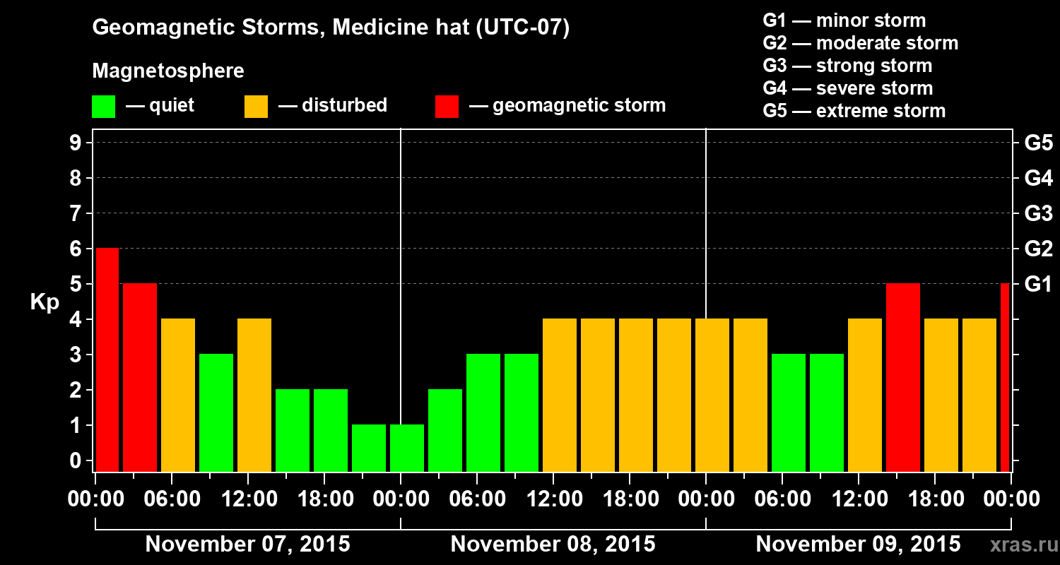 Geomagnetic storms in Medicine hat — Nov 09, 2015
