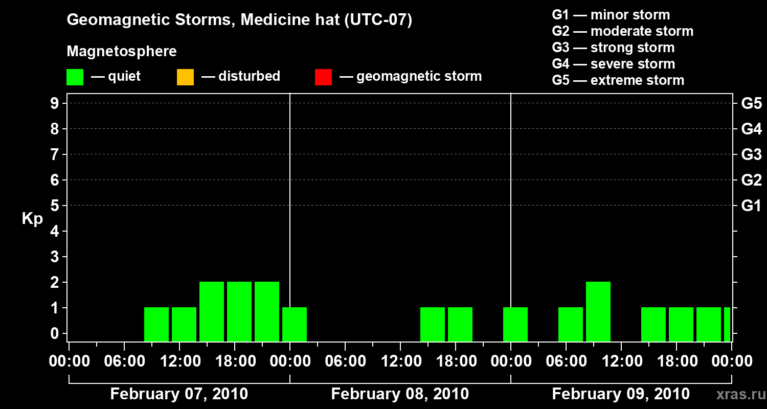 Geomagnetic storms in Medicine hat — Feb 09, 2010