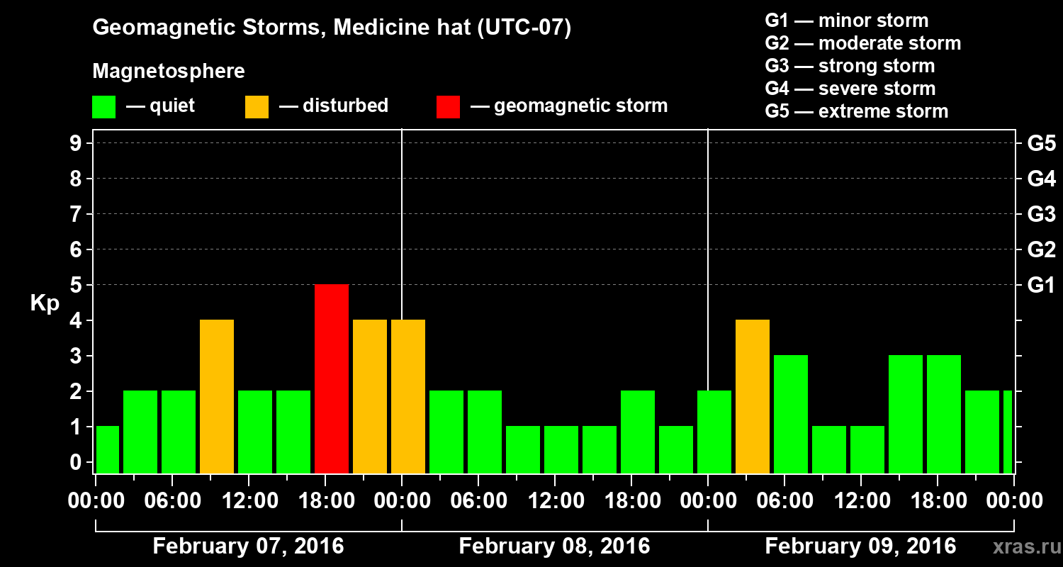 Geomagnetic storms in Medicine hat — Feb 09, 2016