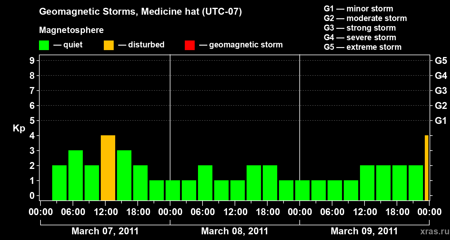 Geomagnetic storms in Medicine hat — Mar 09, 2011