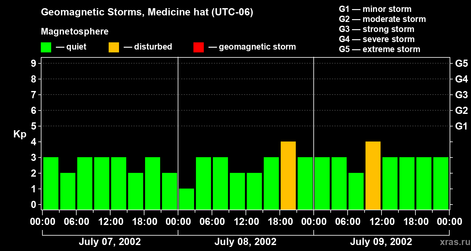 Geomagnetic storms in Medicine hat on Jul 09, 2002