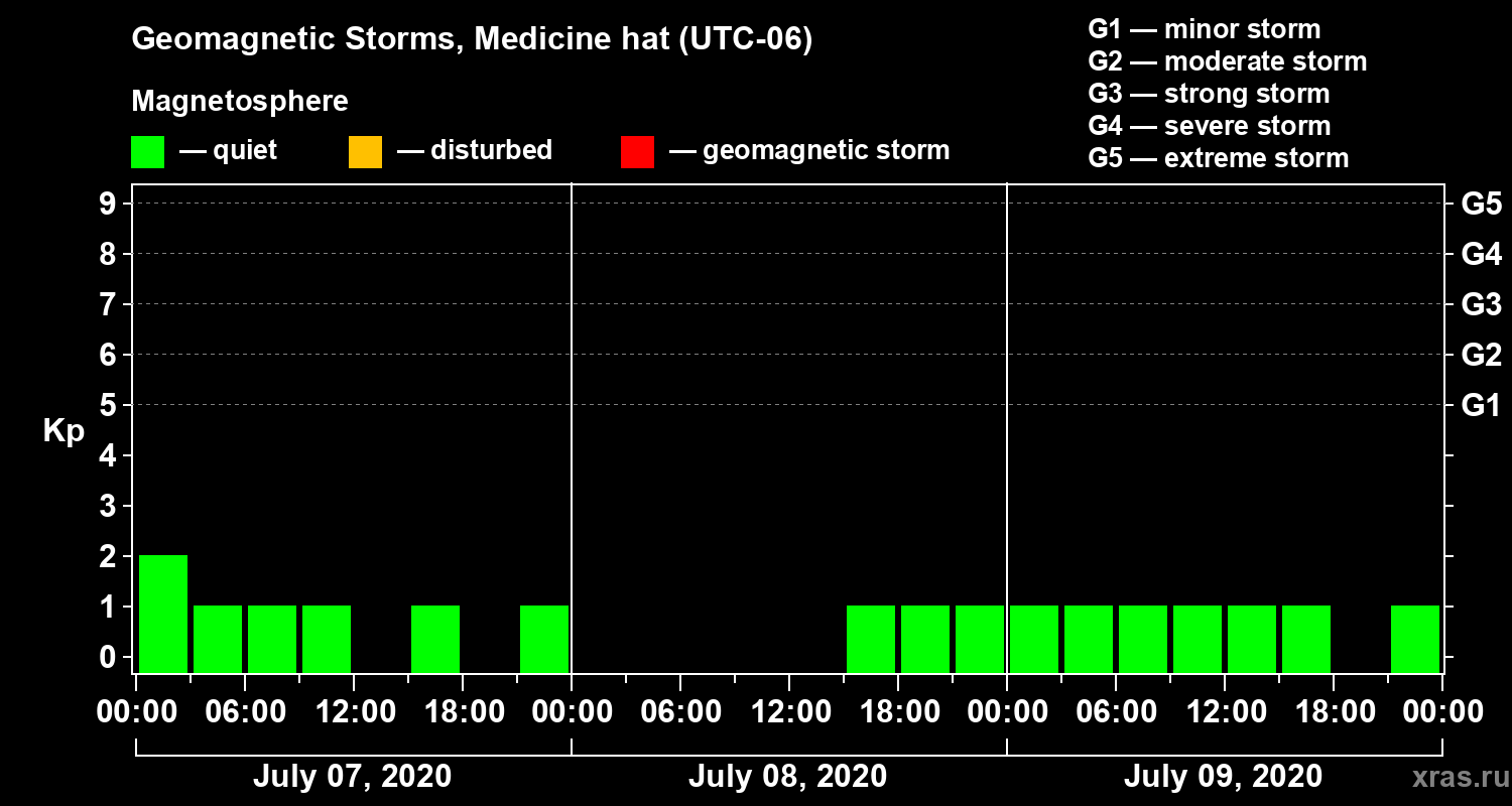 Geomagnetic storms in Medicine hat — Jul 09, 2020