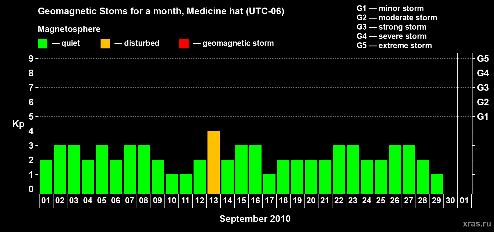 There were no days with an increased level of geomagnetic disturbance in September 2010