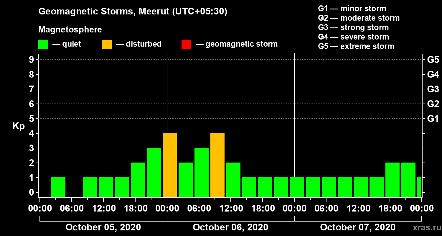Geomagnetic storms in Meerut in October 2020