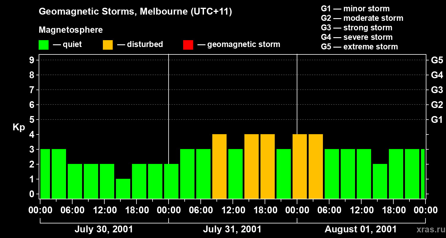 Geomagnetic storms in Melbourne on Aug 01, 2001