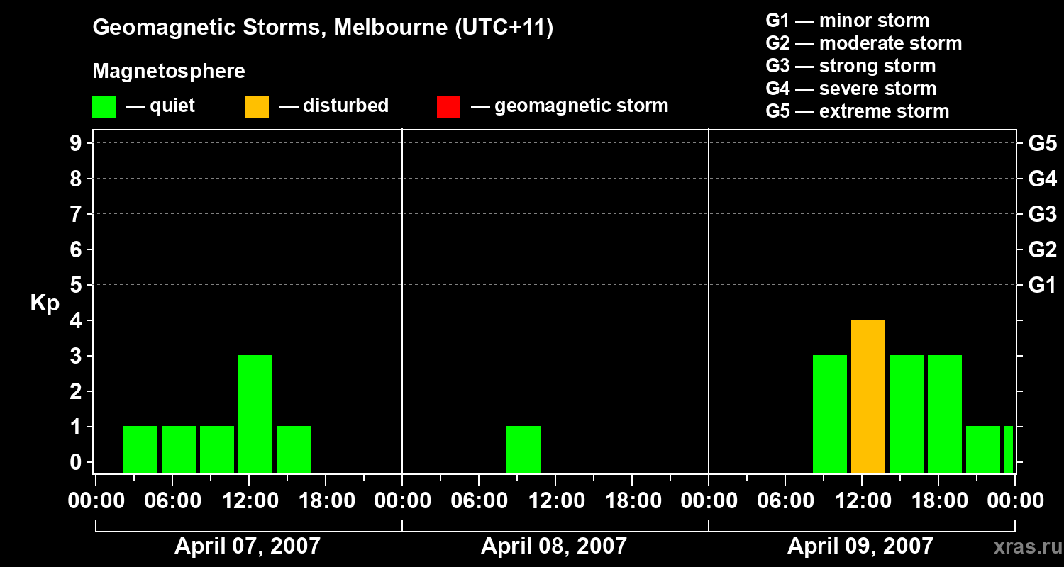 Geomagnetic storms in Melbourne on Apr 09, 2007