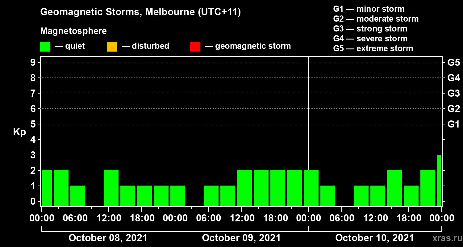 Geomagnetic storms in Melbourne on Oct 10, 2021