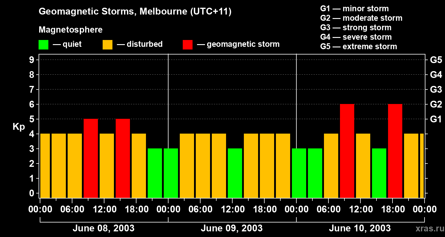 Geomagnetic storms in Melbourne on Jun 10, 2003