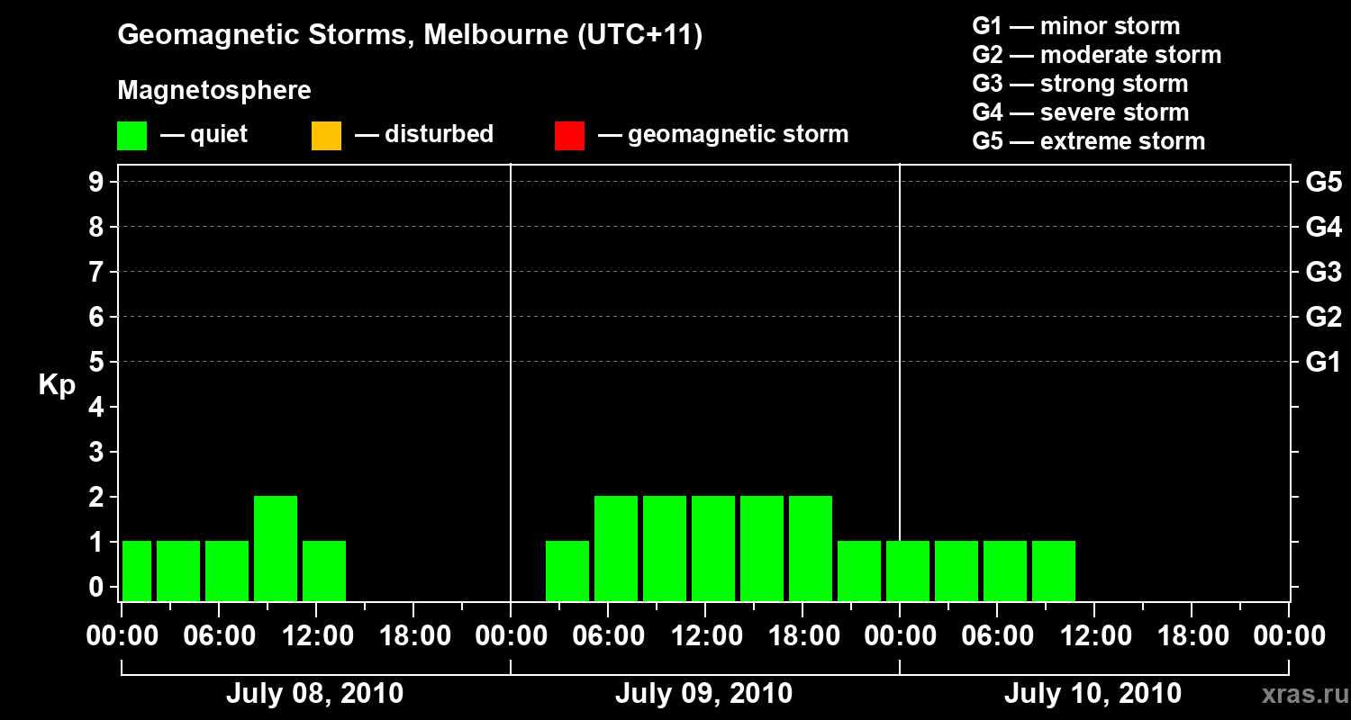 Geomagnetic storms in Melbourne on Jul 10, 2010