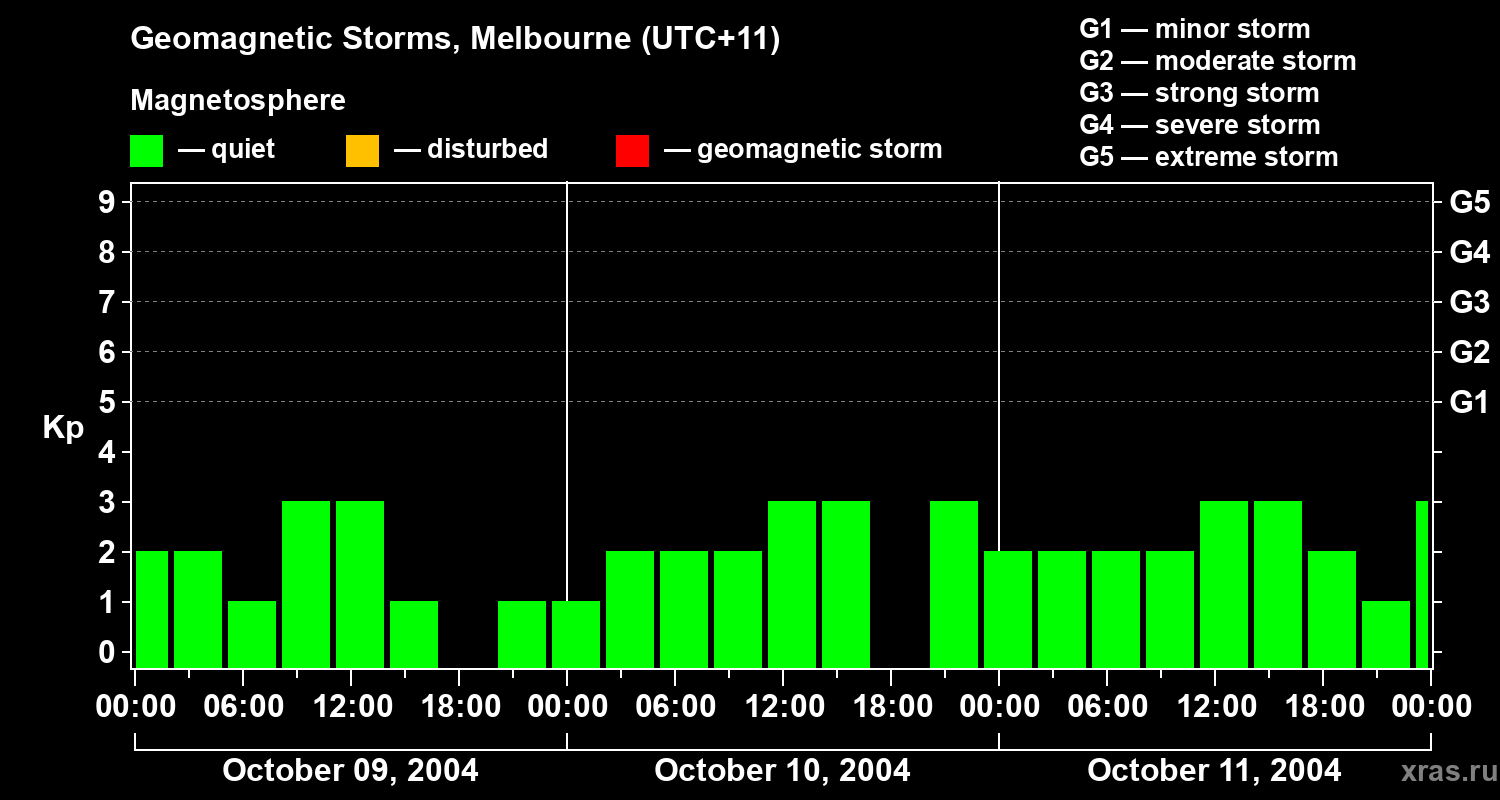Geomagnetic storms in Melbourne on Oct 11, 2004